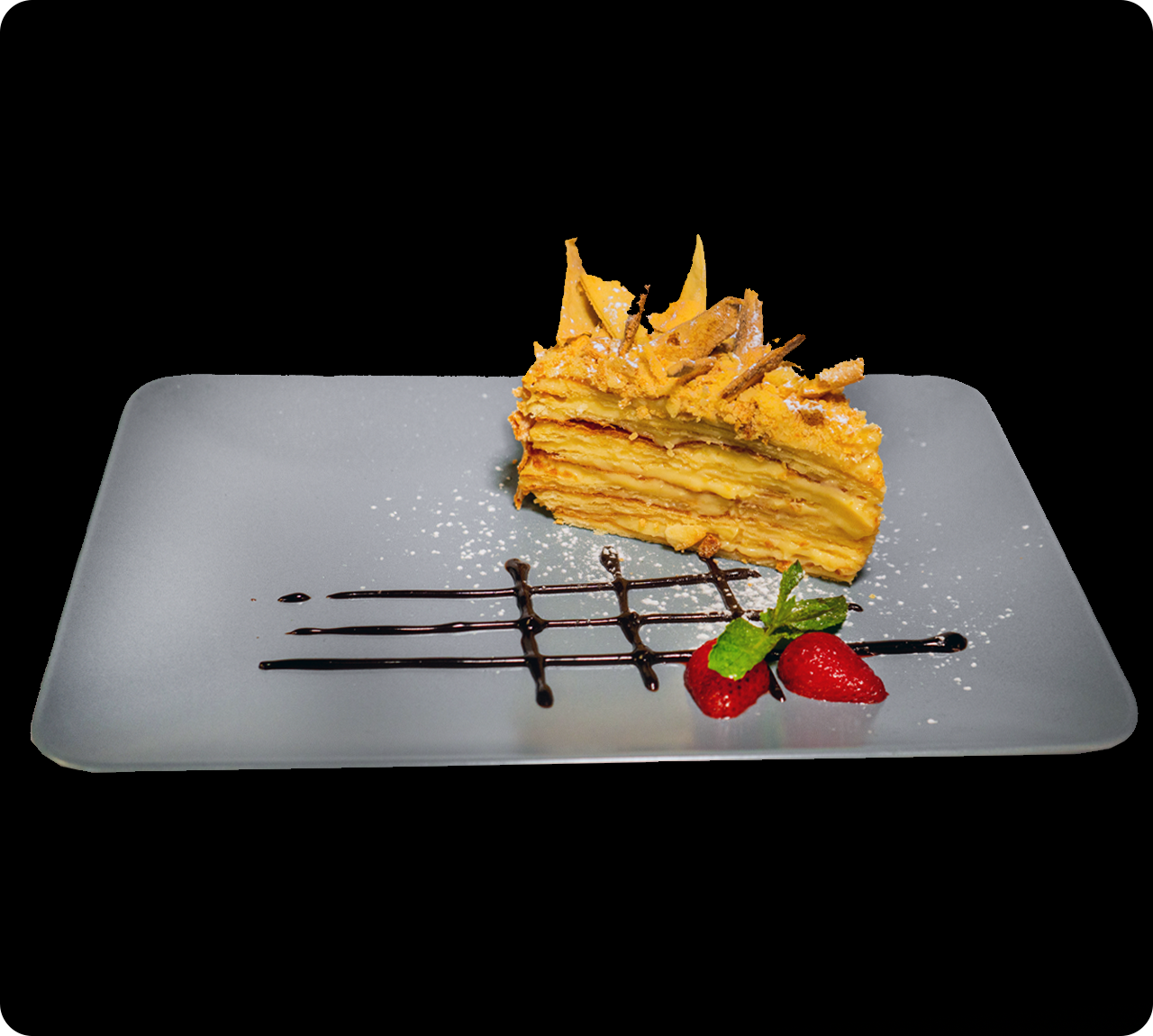 Цей шедевральний десерт складається з ніжних шарів бісквіту, крему та легкою глазурі. Кожен шматок Наполеона – це гармонія неперевершеного смаку.