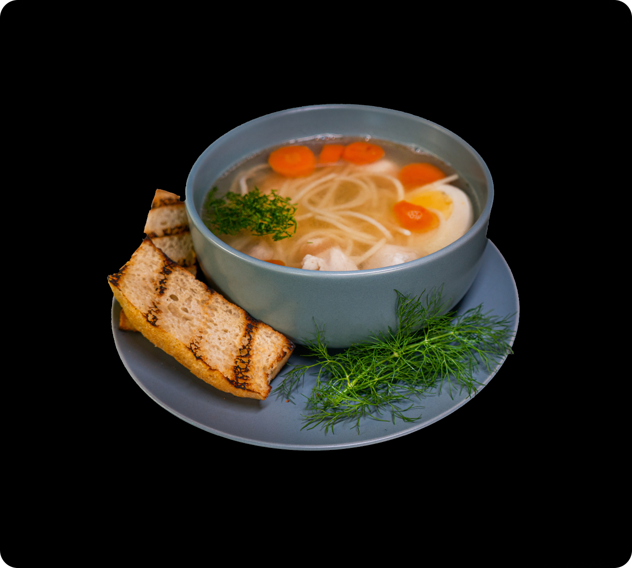 Смачно і апетитно – наш курячий бульйон з яйцем та смачною локшиною розкриє перед вами експлозію смаку та аромату, створюючи неповторний смаковий досвід.