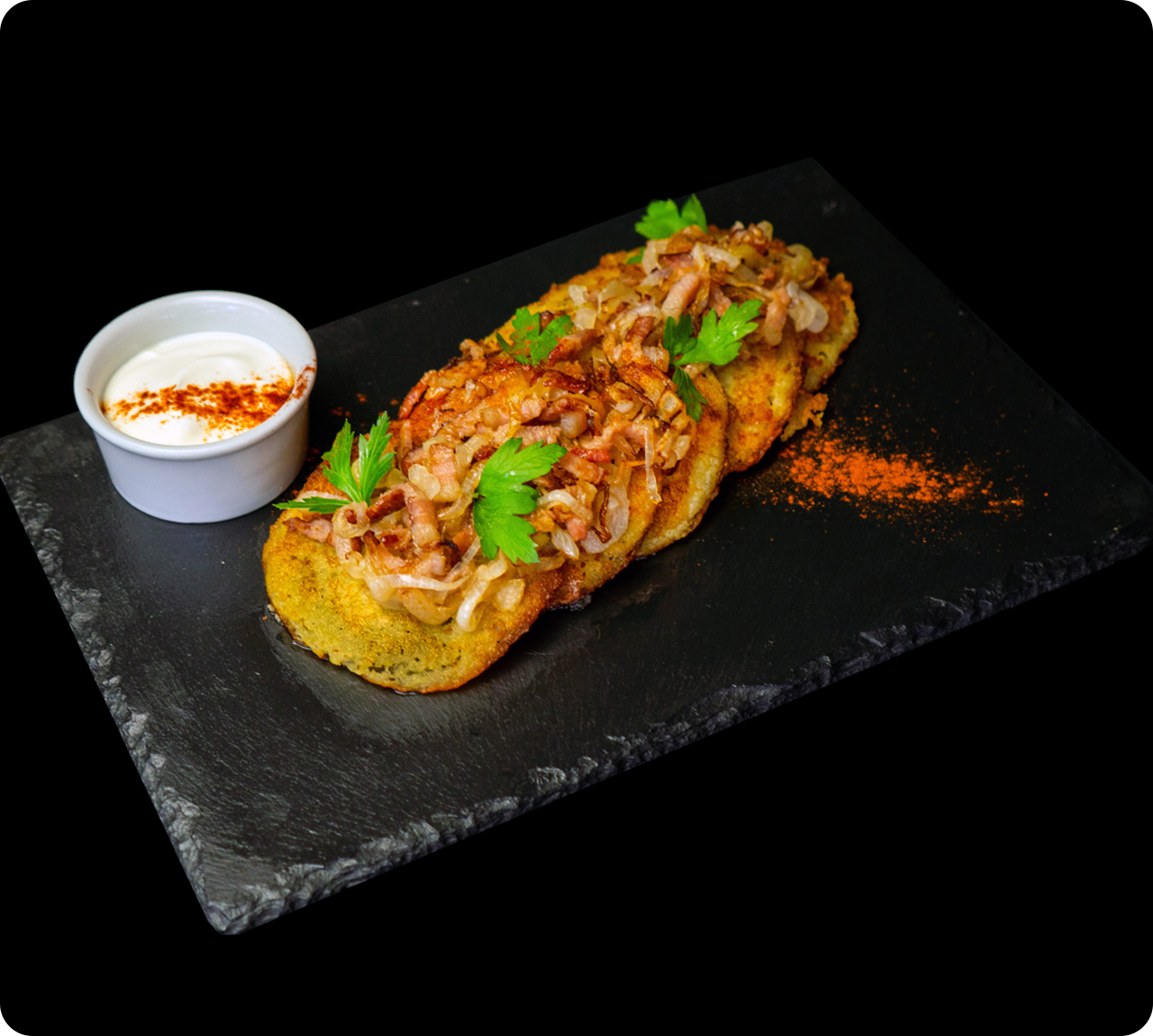Смачні, хрусткі деруни, виготовлені зі смачної картоплі та обсмажені з ароматним беконом. Ця страва поєднує в собі традиційний смак, насолоду та пікантність.